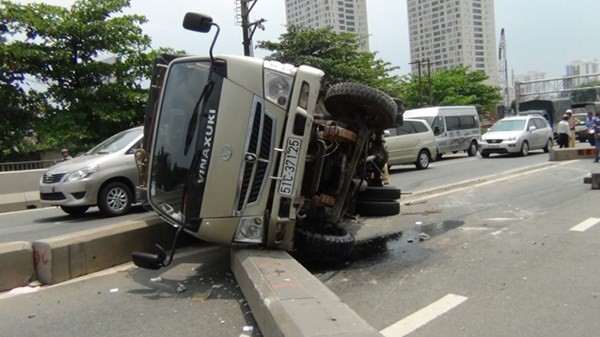 Old  Default Xe tải tông dải phân cách, lật ngang trên cầu Sài Gòn