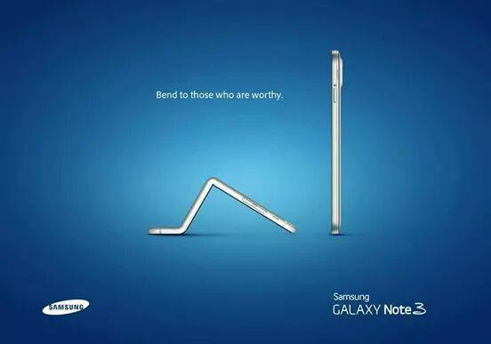 Trước đó Samsung cũng có đăng tải một hình ảnh liên quan đến vụ việc iPhone 6 Plus cong .