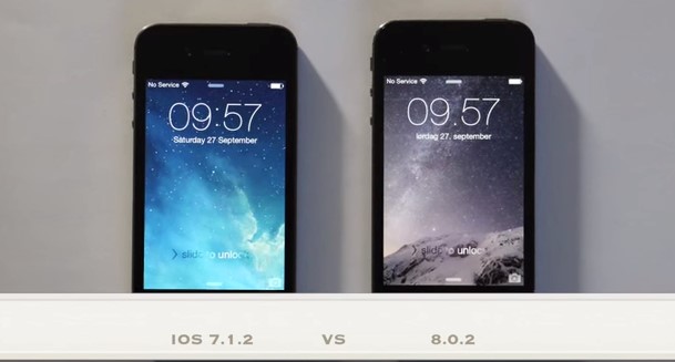 Mới đây, người dùng YouTube có nickname kabriolett đã đăng tải video so sánh hai chiếc iPhone 4S sử dụng hệ điều hành iOS 7.1.2 và iOS 8.0.2 để cho thấy sự khác biệt về tốc độ xử lý giữa hai phiên bản.