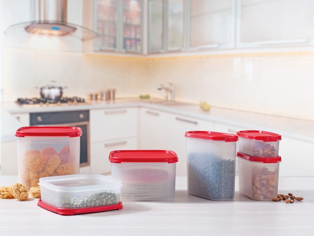 Khắc phục: Vận động cả nhà dành hẳn một ngày nghỉ cuối tuần để dọn dẹp căn bếp: thanh lý những vật dụng, thực phẩm không còn sử dụng. Phân chia đồ dùng theo chủng loại rồi xếp vào các khu vực riêng biệt trên tủ/kệ bếp, chú ý chọn những loại hộp có thể xếp chồng lên nhau, như vậy sẽ giúp kệ bếp nhà bạn gọn gàng, có thêm nhiều không gian hơn. Ngoài ra, bạn nên chuyển sang đựng tất cả thực phẩm sau khi mua về vào các loại hộp để tránh tình trạng treo đựng lỉnh kỉnh trong túi nilong gây ảnh hưởng không tốt đến chất lượng thực phẩm và sức khỏe của gia đình. Đồng thời vì loại hộp Tupperware trong suốt này sẽ giúp bạn nhận ra ngay món mình cần đang ở đâu mà không phải mất nhiều thời gian tìm kiếm.