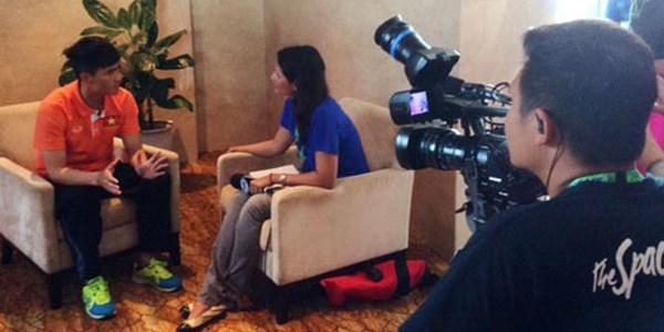 Công Vinh đang trả lời kênh Fox Sports (ảnh Tuấn Thành-bongdaplus)