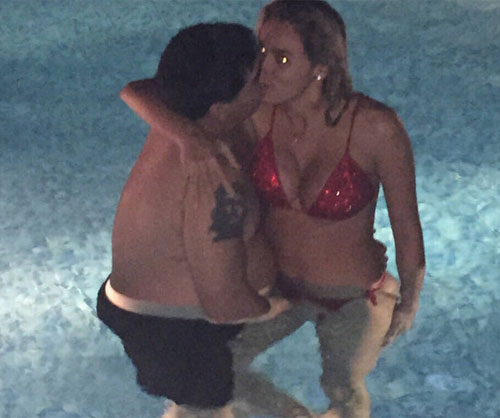 Huyền thoại bóng đá Argentina bị chộp được khoảnh khắc đang ôm hôn, tình tứ với bạn gái Rocio ở bể bơi.
