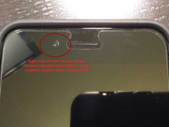 Nhiều người đã báo cáo rằng iPhone 6 có camera trước bị lệch sau một thời gian sử dụng (có thể họ đã phát hiện ra vấn đề này khi đang 'tự sướng'). Như bạn có thể thấy ở những bức ảnh bên dưới, camera trước của iPhone 6 dường như bị lệch sang một bên và để lộ một vùng bán nguyệt nhỏ trông cứ như là cụm camera này đang lẩn trốn.