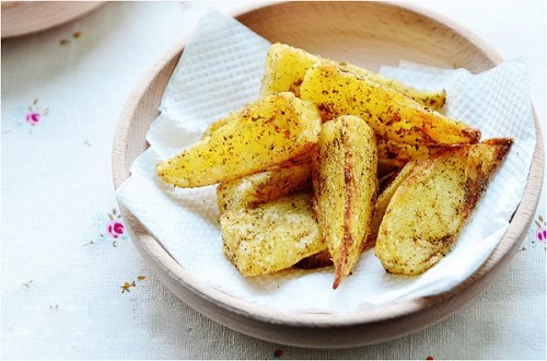 Sau đó, bạn cho khoai tây vào lò sấy với ít dầu ăn, khoảng 30 phút. Rồi đem chiên nhanh khoai cho giòn với dầu ăn.