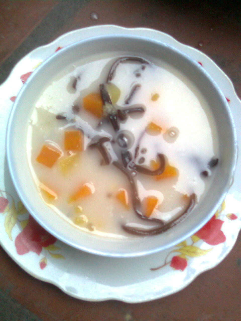 Má nhồi bột năng (khoảng 100 gr) với nước ấm thành một cục dẻo, cán mỏng, xắt thành sợi (như con bánh canh) luộc trần để sẵn ra tô. Tiếp đến, má cho nước dão và nước dừa tươi (1/2 nồi), một ít muối vào nồi rồi thả tuần tự các nguyên liệu vào, nấu sôi liu riu (thứ nào chín lâu cho vào trước, tránh bị nhừ mất ngon) như: khoai môn, bột năng xắt sợi, cái dừa nạo, khoai lang bí, đậu xanh đãi vỏ (đã nấu chín), và cuối cùng là đường cát (khoảng 700 rg). Nêm nếm vừa khẩu vị, chờ nước sôi bùng là nhắc xuống, múc ra chén!
