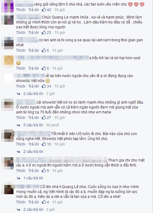 Đa phần ý kiến của người hâm mộ ủng hộ quyết định này của Quang Lê