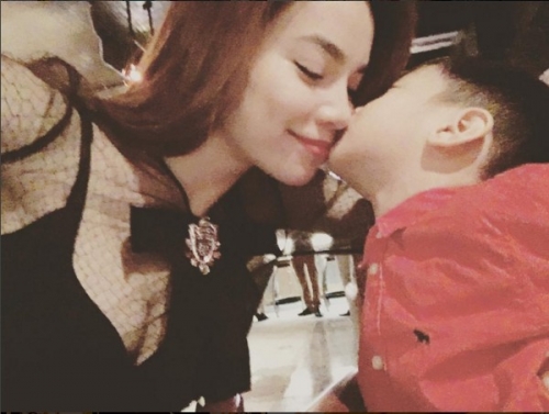 Hồ Ngọc Hà cũng đăng ảnh cô được con trai thơm má.