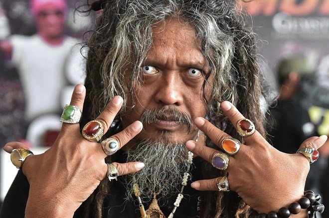 Một người đàn ông Indonesia tay đeo đầy nhẫn đá quý. Nguồn: Getty