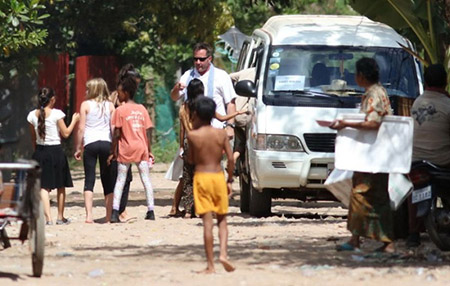 Angelina Jolie cho bọn trẻ trong gia đình nghèo khó ở Campuchia đi chơi và mua sắm cho chúng