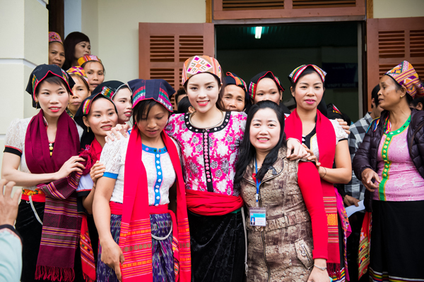 Kỳ Duyên đă ḥa nhập ḿnh trong việc mặc bộ trang phục Thái của người dân Con Cuông (Nghệ an) trong chuyến từ thiện trao quà cho người nghèo đón Tết. Không ít người đă vô cùng xúc động trước sự quan tâm của cô và đoàn từ thiện.