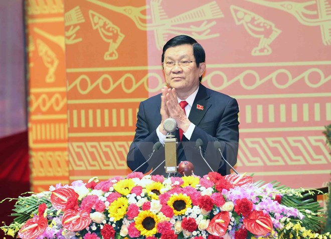 Đồng chí Trương Tấn Sang, Ủy viên Bộ Chính trị, Chủ tịch nước đọc Diễn văn khai mạc Đại hội. (Ảnh: TTXVN)