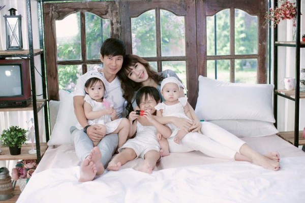 Ba nhóc tì của cặp đôi Lý Hải – Minh Hà: con trai Rio (4 tuổi), con gái Cherry (2 tuổi) và con gái Sunny (hơn 1 tuổi) đều đáng yêu, dễ thương. Vợ chồng Lý Hải nhí nhảnh bên ba nhóc tì trong bộ ảnh được thực hiện nhân ngày sinh nhật tròn 4 tuổi của bé Rio. Vợ chồng nam ca sĩ cùng các con cùng diện trang phục ton sur ton trong ngày sinh nhật của bé Sunny.