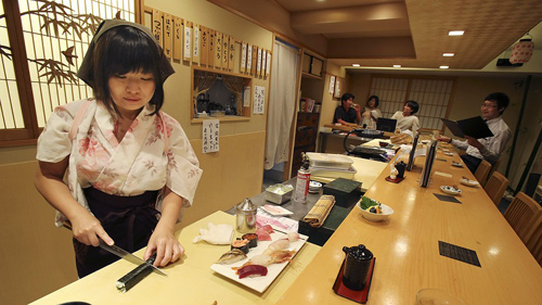 Hiện nay tại Nadeshiko Sushi, phụ nữ đang phụ trách tất cả các bước của quá trình làm sushi.