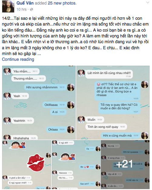 Ngay sau đó vào lễ tình nhân, Quế Vân cũng viết một bức tâm thư rất dài 'tố' Trường Giang bắt cá hai tay, không dám đấu tranh với ê-kip của mình vì chuyện tình cảm với cô.