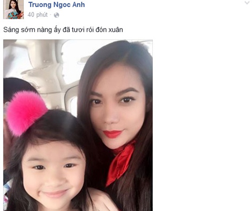 Năm nay Bảo Tiên đón tết cùng mẹ Ánh. Trong suốt kỳ nghỉ Tết, nữ diễn viên 40 tuổi thường xuyên cập nhật những bức ảnh ‘tự sướng’ trong hành trình du xuân của hai mẹ con. Trương Ngọc Ánh gọi mình và cô con gái 8 tuổi là ‘hai chị em’ với những bức ảnh tươi tắn thu hút hàng ngàn lượt like của người hâm mộ.