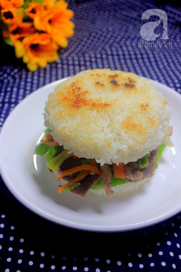 Những chiếc burger vào buổi sáng sẽ giúp cho bạn bổ sung thêm nhiều năng lượng. Thay vì làm burger bằng bánh mì, bạn thử làm cùng với cơm xem sao. Chỉ mất 15 phút chế biến nhưng bạn đã có chiếc burger vô cùng lạ mắt, ngon miệng như dưới đây.