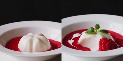 Lấy panna cotta ra đĩa, rưới dâu xay ở bước 1 lên và thưởng thức! Có thể trang trí thêm lá bạc hà cho thêm phần sinh động, hấp dẫn.