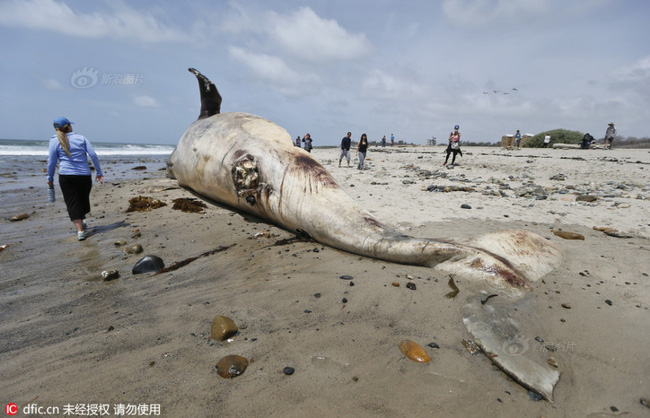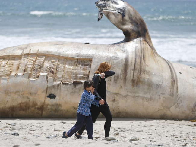 Xác con cá voi khổng lồ trôi dạt vào bờ biển San Clemente, thuộc tiểu bang California, Mỹ ngày 26/4 dài 12m và nặng tới 30 tấn. Con cá voi xấu số được xác định thuộc loài cá voi xám và đã chết trước khi dạt vào bờ một khoảng thời gian.