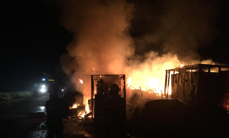 Trung tá Võ Đăng Khoa, Phó trưởng phòng Cảnh sát PCCC - CA Hà Tĩnh thông tin, vụ cháy xảy ra vào 20h30 tối qua tại bãi chứa thiết bị điện của công ty CP gang thép Vạn Lợi.