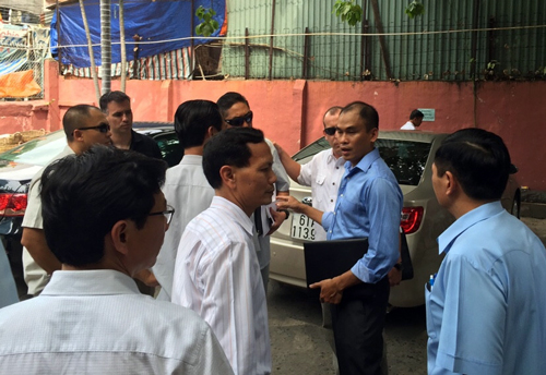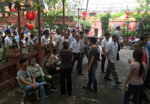 Nhóm an ninh thảo luận tại chùa Ngọc Hoàng. Ảnh: H.S