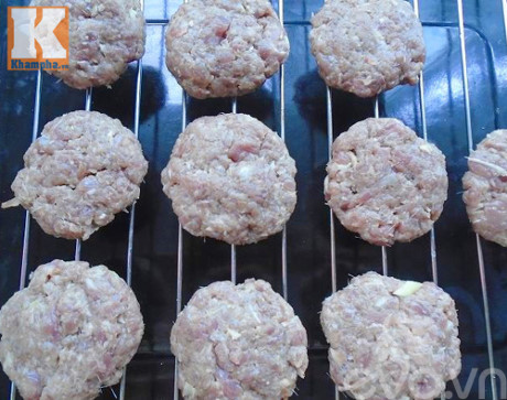 Bước 5: Xếp chả thịt bò lên vỉ nướng. Nướng trên than hoa hoặc bằng lò nướng.
