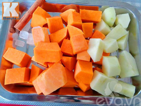 Bước 1: Bí đỏ và táo gọt bỏ vỏ và ruột, rửa sạch rồi thái miếng nhỏ.
