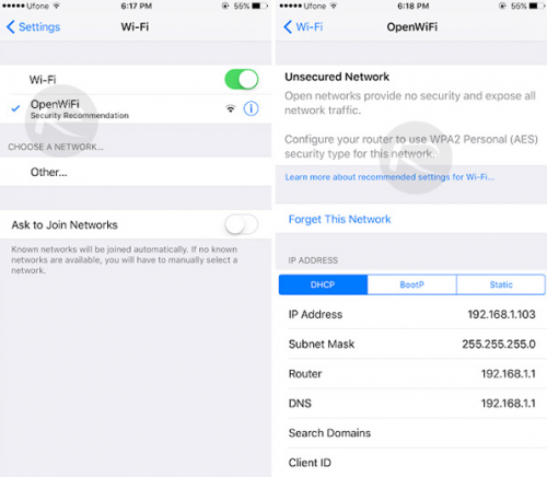 iOS 10 sẽ thông báo cho bạn biết nếu đang kết nối vào mạng Wi-Fi có độ bảo mật kém