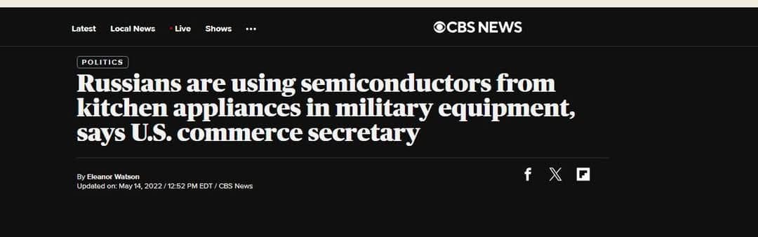 Lại tiếp thêm tin: Nga kiệt quệ không có chip làm vũ khí, phải ăn cắp máy giặt , máy xấy của dân Ukraine để gở phụ tùng, làm các loại vũ khí đơn sơ.