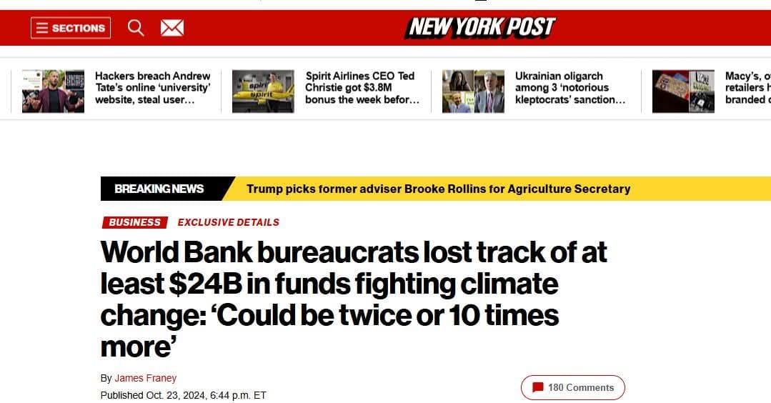 Không lâu, chỉ mới tuần trước, 24 tỷ đô chống biến đổi khí hậu nằm ở ngân hàng thế giới biến mất. Không nghe ai nói gì về số tiền tỷ này. 5 ngày trước ông Biden trong cuộc họp ở Nam Mỹ cũng vừa ký tặng ngân hàng thế giới 4 tỷ để cho các nước nghèo.