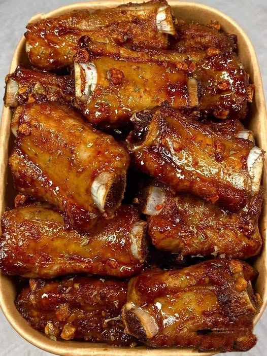 1 . Sườn rửa sạch , dùng giấy ăn thấm khô nước .