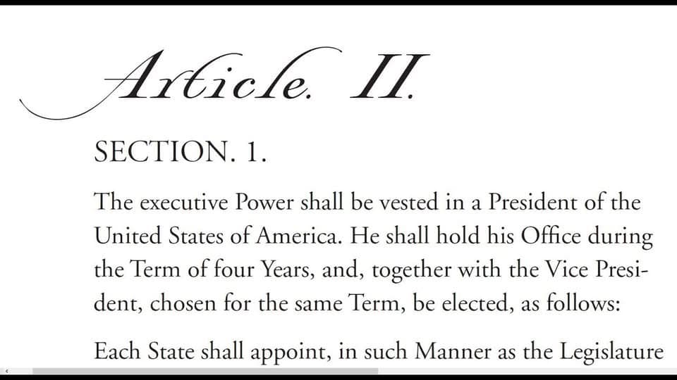 Quyền hành pháp của tổng thống Hoa Kỳ được quy định ở điều II của Hiến Pháp như sau: