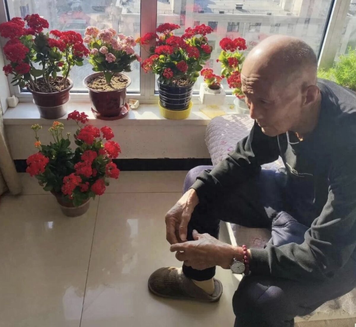 Nhưng mọi chuyện đã thay đổi 180 độ kể từ khi anh đón người cha 87 tuổi đến sống cùng. Từ ngày đó, những chậu cây tưởng chừng vô vọng đã dần dần hồi sinh. Nổi bật nhất là những chậu hoa sống đời trên bậu cửa sổ: cây nào cũng xanh mướt, tràn trề nhựa sống, hoa nở rộ tưng bừng, đẹp đến mức khiến ai nhìn cũng phải xuýt xoa khen ngợi.