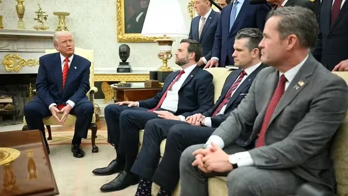 (từ trái sang) Tổng thống Mỹ Donald Trump, Phó Tổng thống JD Vance, Bộ trưởng Quốc phòng Pete Hegseth và Cố vấn An ninh Quốc gia Mike Waltz. Ảnh: AFP