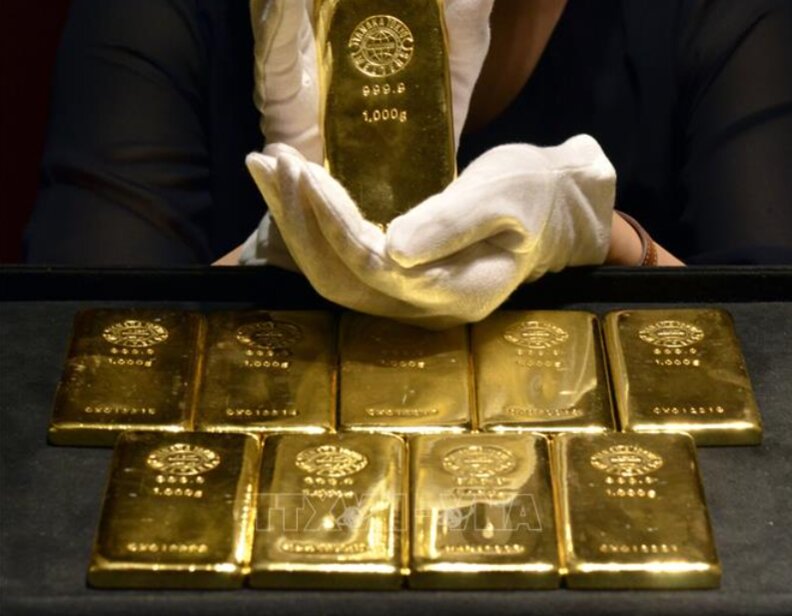 Vàng miếng được bán tại cửa hàng ở Tokyo, Nhật Bản.