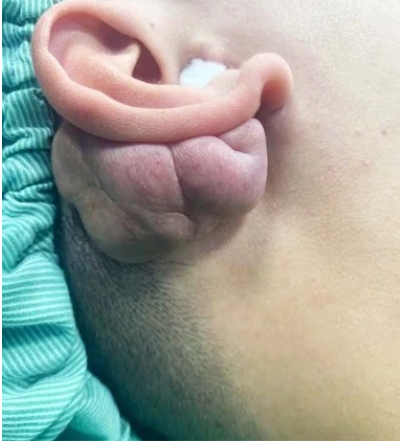 Nam thanh niên 22 tuổi nhập viện với khối u lớn, bao phủ gần hết mặt sau vành tai. Các bác sĩ phải tiến hành phẫu thuật gấp.