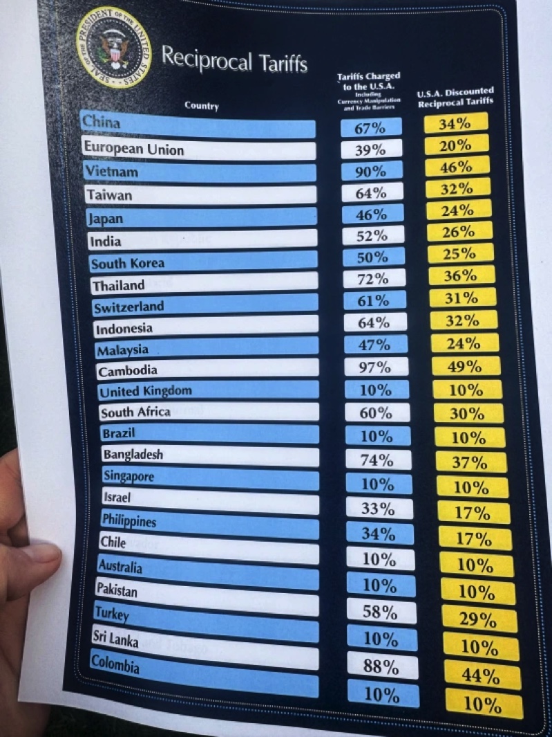 Với tuyên bố của Trump rằng gánh nặng thuế quan, ngoại hối và quy định của Trung Quốc lên tới 67%, Hoa Kỳ hiện đang áp dụng mức thuế 34% để đáp trả.