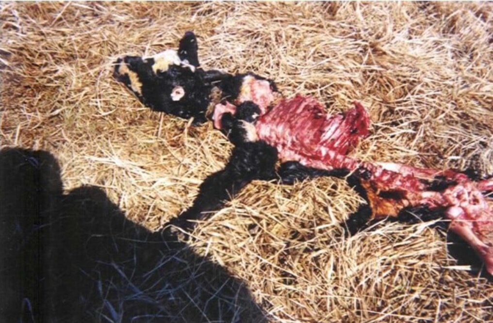 Xác gia súc bị cắt mất nhiều phần được tìm thấy gần trang trại Skinwalker năm 1997. Ảnh: Tumblr.
