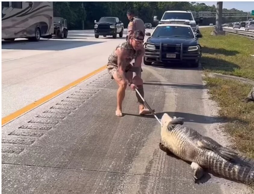 Không găng tay, không giày, không sợ hãi – một người đàn ông ở Florida đã khiến hàng triệu người sửng sốt khi lao vào vật lộn với cá sấu khổng lồ ngay bên lề đường cao tốc, chỉ với chiếc gậy bắt và... đôi chân trần.