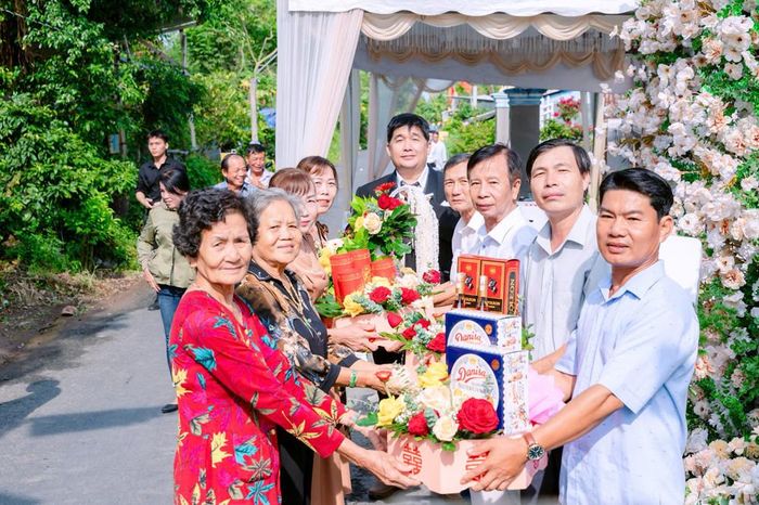 “Khi được gia đình tôi nhờ bê tráp, các ông bà vui vẻ đồng ý. Mọi người hợp tác ăn ý nên phần ăn hỏi rất trọn vẹn, chồng tôi sau đó đã gửi họ phong bao lì xì thay cho lời cảm ơn chân thành.