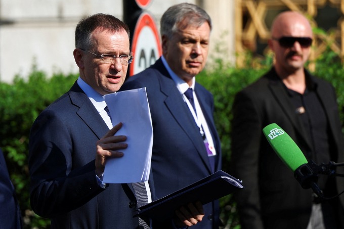 Trưởng đoàn đàm phán Nga Vladimir Medinsky (trái) trả lời báo giới sau cuộc đàm phán với Ukraine ở Istanbul, Thổ Nhĩ Kỳ ngày 2/6. Ảnh: Reuters