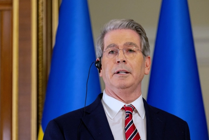 Bộ trưởng Tài chính Mỹ Scott Bessent tại Kiev, Ukraine ngày 12/2. Ảnh: AFP