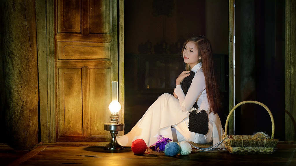 Áo dài trắng Tóc Nàng xỏa ngang vai