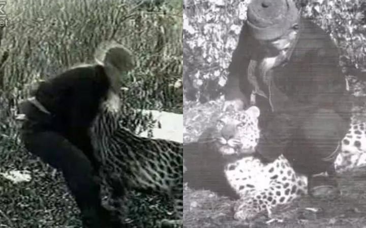 Hình ảnh về Hà Quảng Vị dùng tay không đánh báo lan truyền trên mạng, tuy nhiên nhiều người nghi ngờ con báo đã chết