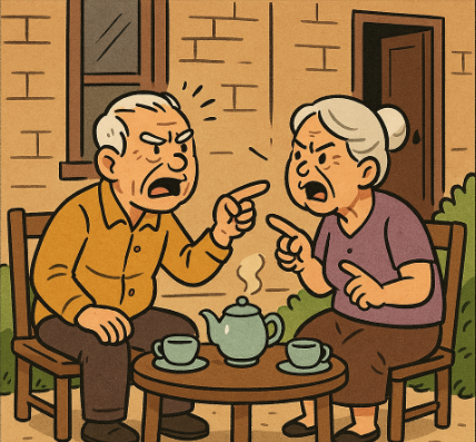 – Cãi nhau mà không nhớ lý do… đúng là “cãi vòng quanh”!