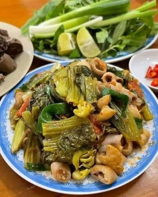 Từ đó, mỗi khi trời trở lạnh, dân làng lại tụ họp bên mâm cơm, gọi món “Lòng xào Dưa” như một cách tưởng nhớ mối tình huyền thoại ấy. Người ta bảo, ăn món này không chỉ ấm bụng mà còn ấm lòng – vì nó là minh chứng cho việc: dù bạn có mềm yếu như lòng hay chua chát như dưa, chỉ cần gặp đúng người, bạn sẽ trở thành tuyệt phẩm.
