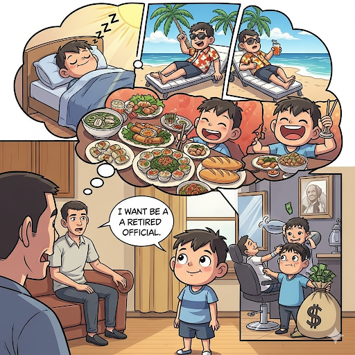 – Cháu thích làm... cán bộ hưu!