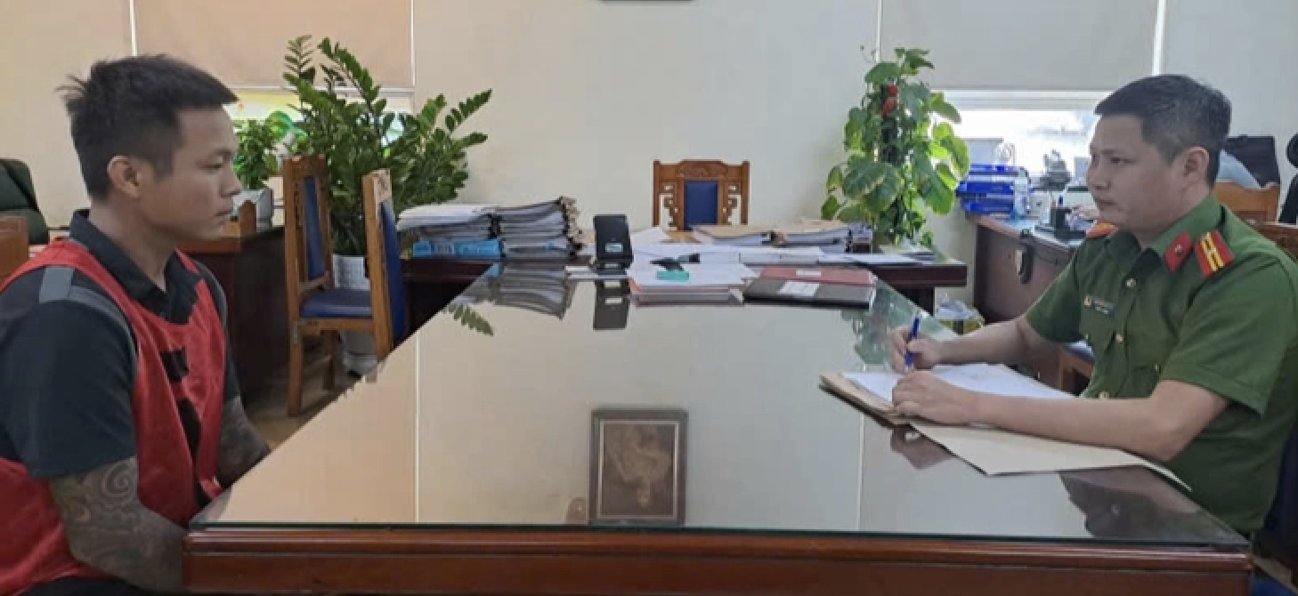 Ngô Quang Vỹ làm việc với cơ quan điều tra. Ảnh: Công an cung cấp