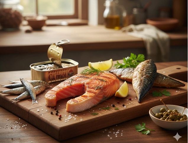 Để tận dụng tối đa lợi ích, nên chọn cá béo như cá hồi, cá trích, cá mòi và cá ngừ nhỏ. Một khẩu phần cá tương đương khoảng 100 - 120 gram, cỡ lòng bàn tay. Chế biến bằng cách kho, hấp, nướng, hoặc áp chảo nhẹ giúp giữ nguyên dưỡng chất mà không làm tăng chất béo xấu.