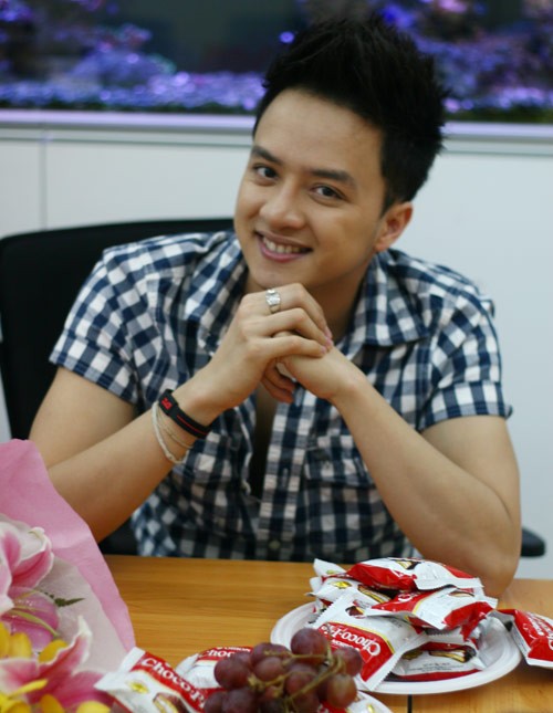 - Dân gian mình có nói "hồng nhan bạc phận" để ám chỉ những ai có sắc, có tài thì thuờng rất long đong về chuyện tình duyên nên em bảo anh vừa đẹp trai vừa hát hay thì cái chữ thất tình và yêu đơn phương chắc cũng có. (Cuời tủm tỉm). Nói vui vậy thôi, chứ là con người thì dù có như thế nào cũng phải sống bằng cái tình cảm thật sự nên nếu gặp được ai mà mình thích, mình yêu thì anh sẽ "làm tới", còn người ta có yêu hay không thì đó là chuyện của nguời ta. nếu đuơc đáp lại thì hạnh phúc, còn không thì phải đơn phương rồi và anh cũng môt lần bị đơn phương hồi cấp 3, lúc đó anh chưa nổi tiếng, nếu bạn gái đó bây giờ mà biết anh nổi tiếng chắc là tiếc lắm. (Cười hi hi). Hiện tại, anh cũng chưa đặt nặng về vấn đề về tình cảm và hôn nhân nên điều ước của anh chính là được mọi người yêu mến và ủng hộ anh trên con đường ca hát.