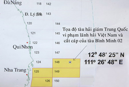 Vị trí các tàu hải giám Trung Quốc vi phạm chủ quyền của Việt Nam và cắt cáp của tàu Bình Minh 02. Ảnh: TTXVN.